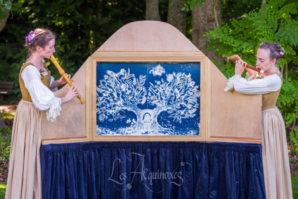 L’ensemble les Æquinoxes composé de Clémentine Leduque (Traverso, clavecin, comédienne) et de Pauline Hervouet (flûtes à bec, traverso, comédienne) se consacre à redonner vie au patrimoine culturel des XVII e et XVIII e siècles, par des restitutions historiquement informées. Grâce à la musique, aux costumes et au théâtre, le duo invite les spectateurs au cœur d’une Histoire émouvante et sensible.